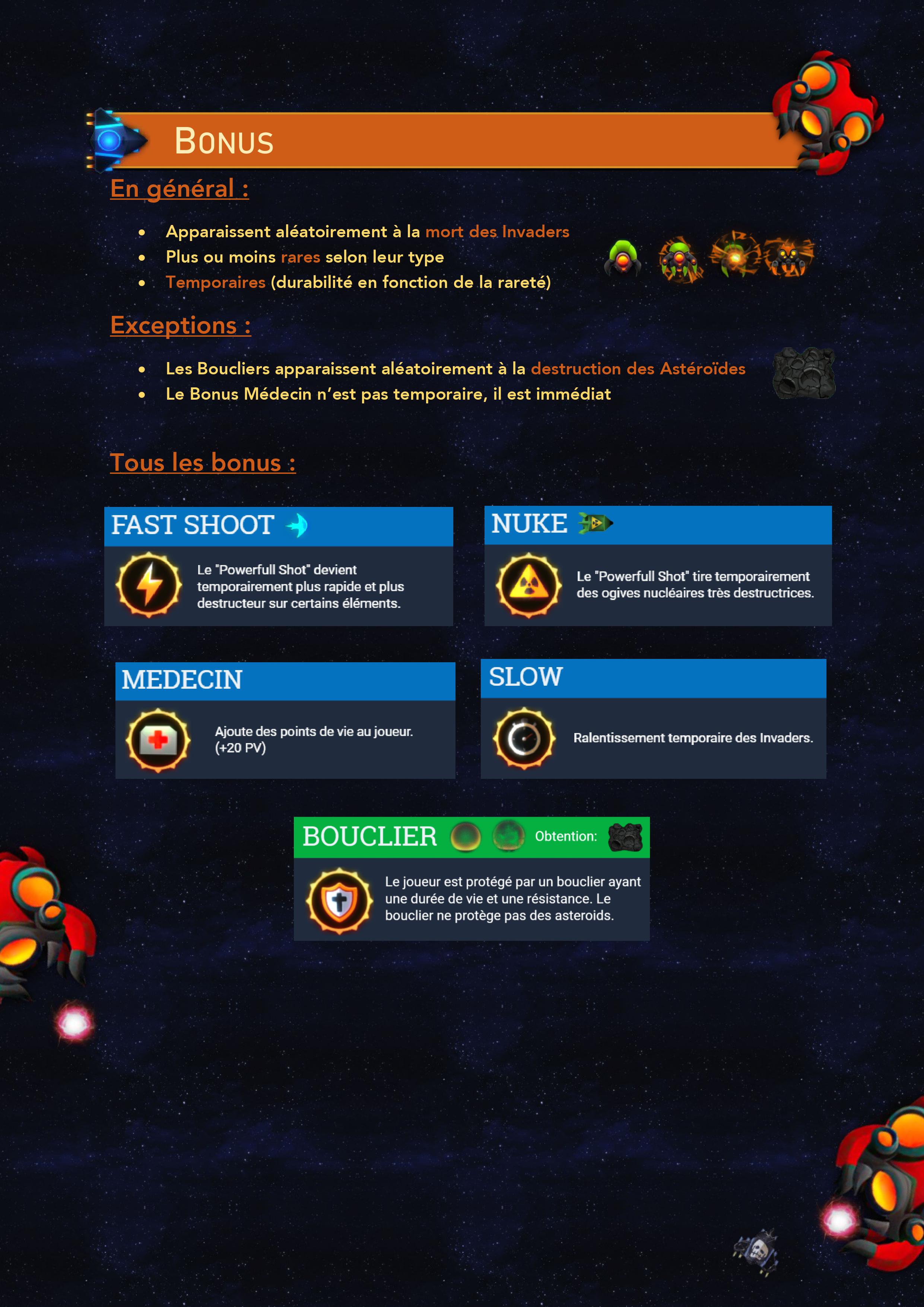 Durant ce projet j'ai réaliser la conception UML du jeu mais aussi de nombreuses fonctionnalités telles que: - Système de mouvement des Invaders - Système de tir - Système de bonus2) Comment jouer au jeu?