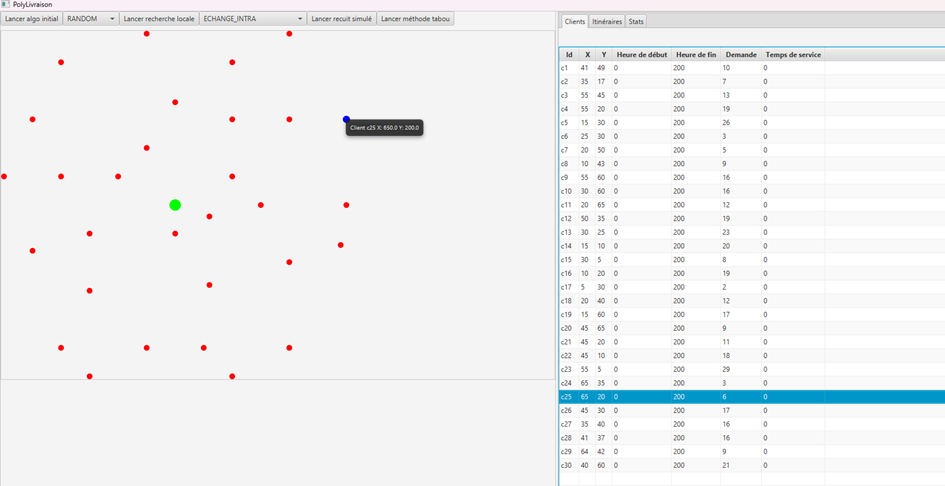 - Développement d’une interface graphique afin de visualiser la localisation des clients et une tournée